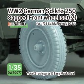 DW30077 WW2 German SD.Kfz 250 Sagged wheel set (2) - (for 1/35 Sd.kfz 250, Demag D7 kit)