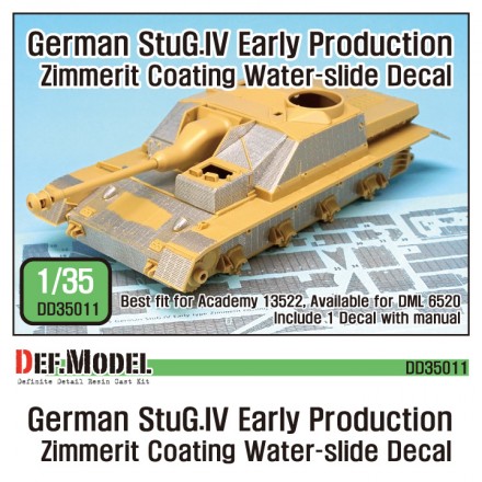 DD35011 WWII STUG IV Early Zimmerit Decal set (1/35 Academy new) - Restocked