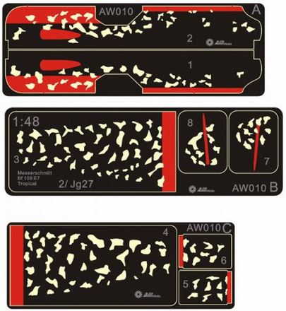 AW010 Spraying Stencils Messerschmitt Bf 109 E-7 Tropical Camo Set.1