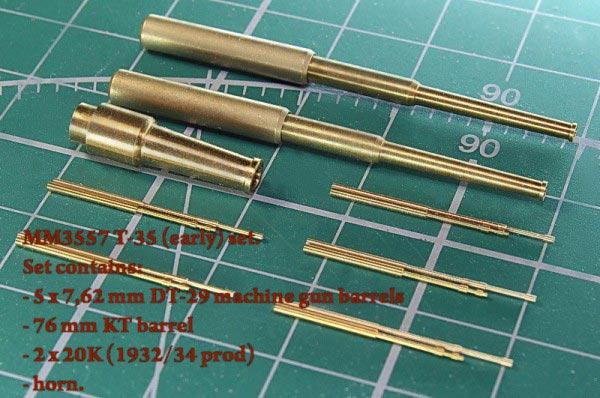 MM3557 Комплект стволов и пулеметов для Т-35 (ранние серии). Ствол пушки КТ, два ствола пушки 20К обр. 1932/34г., пять пулеметов ДТ-29, звуковой сигнал