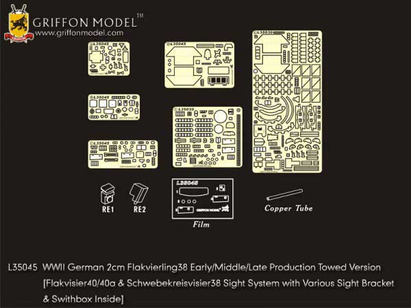 This 1/35 Basic Detail-Upgraded Set includes(1)Photoetched Fret * 6(2)Resin Dynamo * 2(3)Film for Gun Sight Instrument Panel * 1(4)Brass Hollow Pipe * 1(5)Auxiliary Material: ABS Rod, Brass WireSuit for Dragon 6547 Kit