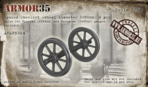 Смола 1/35 , Диаметр колёс 1050 мм.Набор включает два варианта осей для русской (1524 мм) и европейской(1435 мм) колеи.