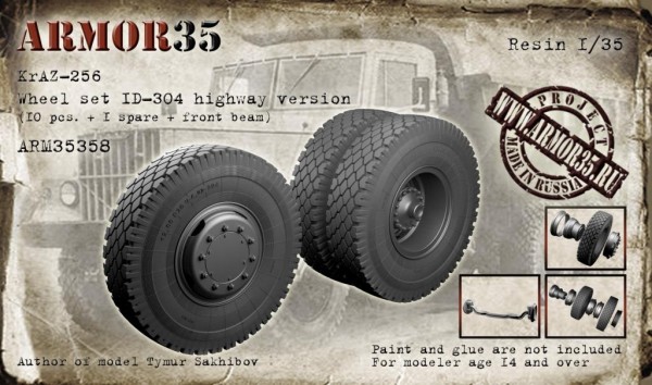 ARM35358 КрАЗ-256, Набор колес ИД-304,шоссейная версия, (10штук+запаска+передняя балка)