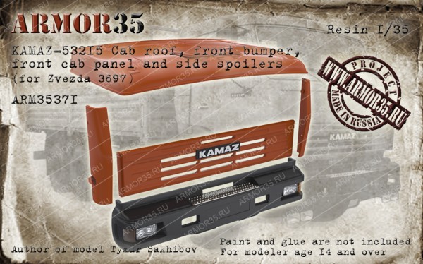 ARM35371 КамАЗ-53215 Крыша, бампер, решетка, спойлеры (для модели фирмы Звезда 3697)
