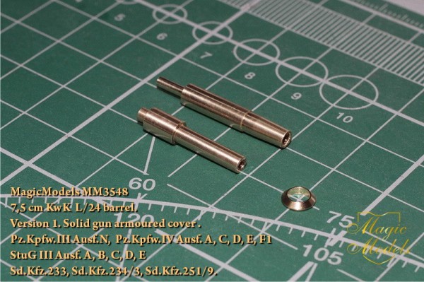 MM3548 7,5-см ствол KwK L/24 . Версия 1. Бронеожух ствола- моноблок. Pz.Kpfw.III Ausf.N, Pz.Kpfw.IV Ausf. A, C, D, E, F1, StuG III Ausf. A, B, C, D, E Sd.Kfz.233, Sd.Kfz.234/3, Sd.Kfz.251/9.
