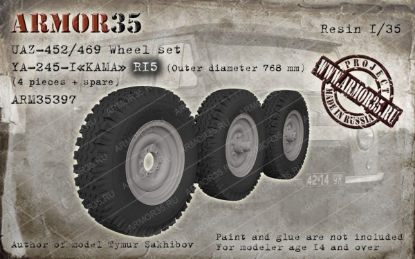 ARM35397 УАЗ-452/469 Набор колес Я-245-1 "Кама" R-15 (768 мм.) (4 штуки+запаска)