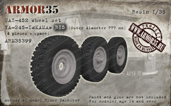 ARM35399 УАЗ-452 Набор колес Я-245-1 "Кама" R-15 (777 мм.) (4 штуки+запаска)