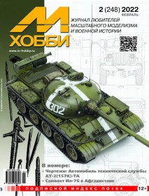 ИЗ КОРОБКИ Александр СЧАСТНЫЙ Японцы были первыми . . . . . . . . . . . . . . . . . . . . . . . . . 9 (Палубный истребитель A5M2b Claude в 1/72 от Clear Prop!) Александр СЧАСТНЫЙ «Град» из Поднебесной . . . . . . . . . . . . . . . . . . . . . . . 10 (РСЗО БМ-21 в 1/72 от Hobby Boss) Павел СПИРИДОНОВ С сиропом за три копейки . . . . . . . . . . . . . . . . . . . . . 12 (Автомат по продаже газированной воды АТ-114 в 1/72 от A-miniatures) Антон БРЕНДЮРЕВ Беспилотные огненные пчелы . . . . . . . . . . . . . . . . . 14 (БПЛА KDA-1 (Q-2A) и BQM-34A (Q-2C) Firebee в 1/48 от ICM) Вячеслав ДЕМЧЕНКО Первый «Эмиль» . . . . . . . . . . . . . . . . . . . . . . . . . . . . . 17 (Истребитель Bf 109E-1 в 1/48 от Wingsy Kits) Даниил ЦИПЕЛЕВ Крестоносец на распутье . . . . . . . . . . . . . . . . . . . . . 21 (Крейсерский танк Crusader Mk. II в 1/35 от Border Model) Сергей ВИШНЯКОВ Achtung! Fliegeralarm! . . . . . . . . . . . . . . . . . . . . . . . . . 25 (Зенитное орудие 3,7 см. Maxim Flak 14 в 1/35 от «Грань») Михаил УКОЛОВ Забытая мотоэкзотика . . . . . . . . . . . . . . . . . . . . . . . 27 (Мотоцикл MGC 1930 Type N 3B Sport в 1/35 от Denisssmodel) Вадим ЛАВРОВ, Андрей АКСЕНОВ Третий не лишний . . . . . . . . . . . . . . . . . . . . . . . . . . . . 29 (Основной боевой танк Т-62 в 1/35 от «Звезды») Дмитрий КОЛЕСНИК Boeing 757-200 – золотая середина . . . . . . . . . . . . 38 (Пассажирский авиалайнер Боинг 757-200 в 1/144 от «Звезды») Андрей БУРЦЕВ, Дмитрий КОПЫРК Потому-потому, что мы пилоты… . . . . . . . . . . . . . 41 (Летчики стран Оси в кабине и кадеты RAF в 1/32 от ICM)