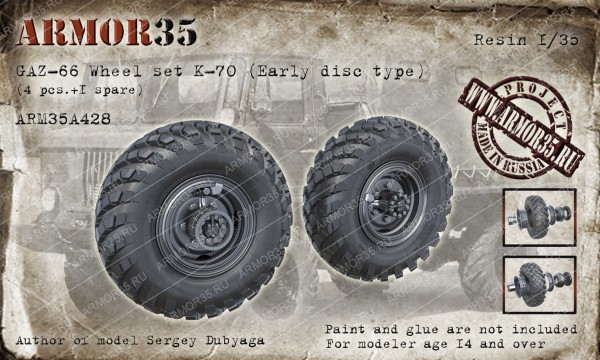 ARM35A428 ГАЗ-66 Набор колес К-70 ранний тип диска (4 штуки+запаска)