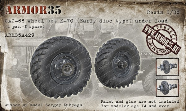 ARM35A429 ГАЗ-66 Набор колес К-70 под нагрузкой,ранний тип диска (4 штуки+запаска)