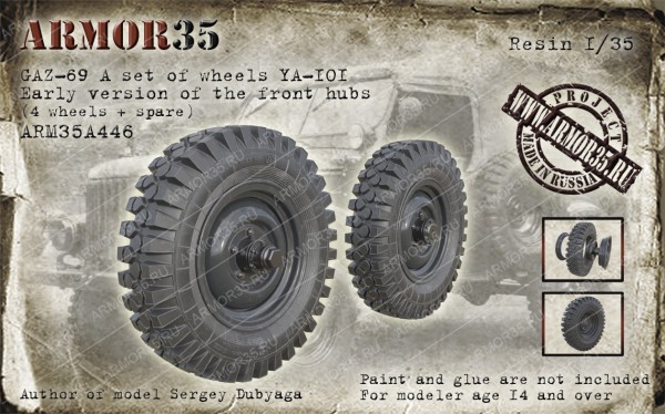 ARM35A446 ГАЗ-69 Набор колес Я-101 (4 колеса +запаска), ранний вариант передних ступиц.