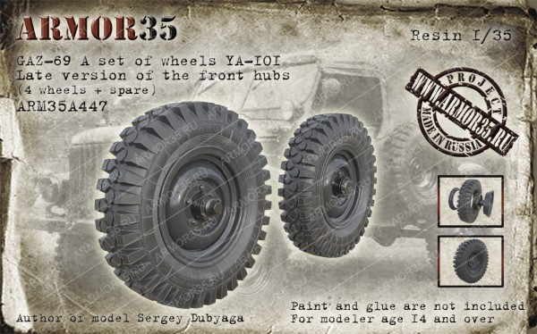 ARM35A447 ГАЗ-69 Набор колес Я-101 (4 колеса +запаска), поздний вариант передних ступиц.