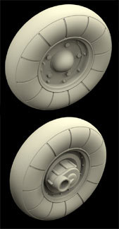 1/35 scale high quality resin wheels. Complete set of 5 wheels for one model kit. Set design to fit Tamiya kit.